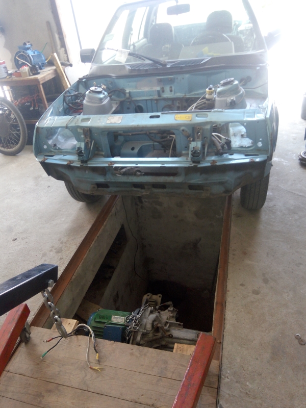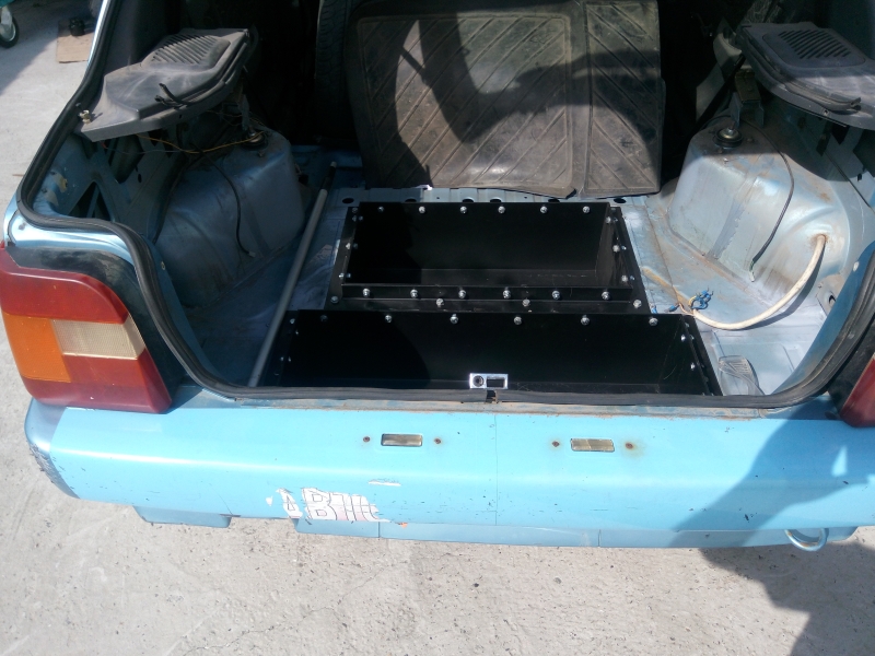 Сегодня приступили к очередной реконструкции Славуты. Будет установлен высоковольтный мотор 100 габарита с медным ротором. Батарея из 40 консерв Ниссан Лиф, 80S, 252...336 В. Рассчетная масса на 80 кг меньше предыдущего варианта при большей пиковой мощности мотора и большей емкости батареи. Батарейные ящики установлены на место бензобака. Для этого пришлось вырезать два окна в полу багажника. В предыдущем варианте батарейный ящик из фанеры лежал в багажнике. Таким образом удалось понизить центр тяжести и увеличить полезный объем багажника.