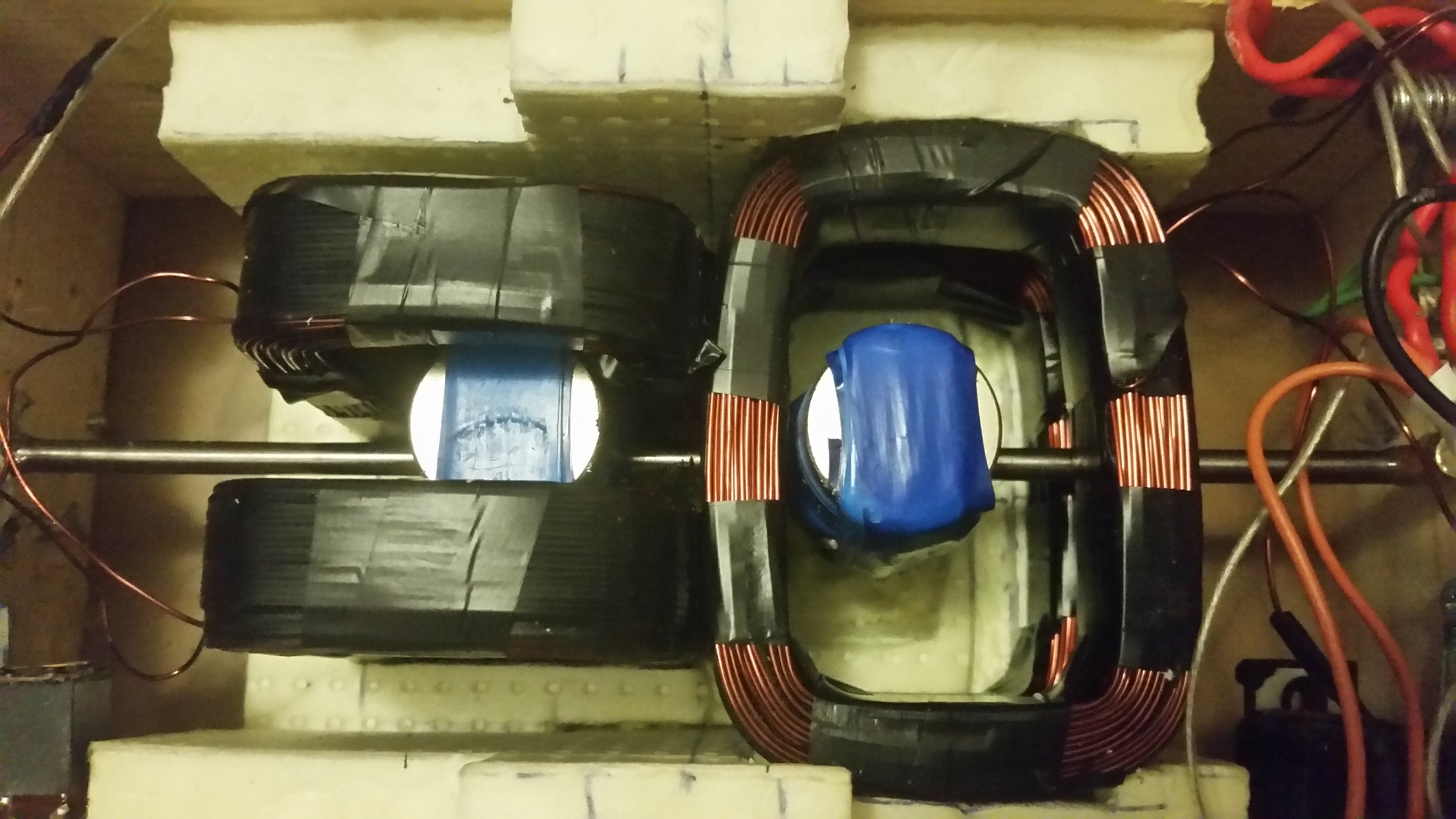 Если кто-то построил двигатель с малым кпд это не значит что плохой принцип, а просто он плохо спроектирован. Имея одни и те же материалы можно сделать совершенно разные двигатели. Нужно понимание куда расходуется мощность, когда она тратится впустую. Двигатель на фото проектировался на 400 вт, потому там столько меди, и магниты там побольше должны были быть, в такой сборке его кпд 70% из за того что магниты не того размера стоят и большие зазоры, в идеале магнит сфера, а все витки катушки удаленные от поверхности сферы на 2-7 мм, охватывают ее с двух сторон (две полусферические обмотки) тогда кпд >90% а ток холостого хода минимальный. Эта грубая сборка дает аж 70% кпд а никто в это не поверит даже, скажут как там же нет железа и зазоры огромные, такого не может быть..