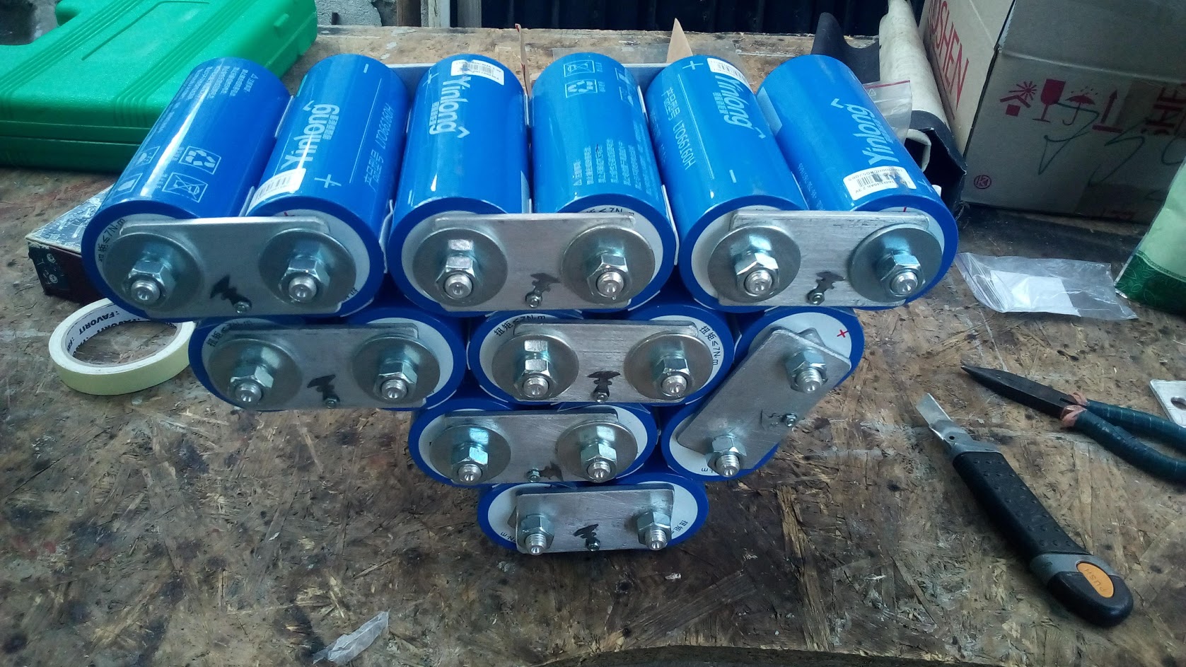 Між собою з'эдную алюмінієвою пластиною яка була в наявності в електромагазині - 40х4. У мене 24В система (сонце + вітер) для якої зібрано 11 титанатів. Верхня межа зарядки і розрядки виставляється на контроллерах. Нижній поріг виставляю так, щоб на кожній банці лишалось 2.1 вольт - щоб був запас на випадок, якщо акумулятори сіли іще звечора, а ще ніч треба пітримувать напругу на контроллерах та інших датчиках. Хоч верхню межу зарядки також можна задати контроллером, але надіятися на долю не треба і потрібні балансири. Я ставив пасивні (BMS плати мені не потрібні, бо межу розряду я контролюю через налаштування інвертора) - якщо напруга на банці перевищує 2,7В, то надлишок "стравлюється" на резистор. Завдяки цьому є гарантія, що навіть якщо одна банка зарядиться швидше за іншу, напруга зарядки на кожній банці не перевищить максимально допустиму.