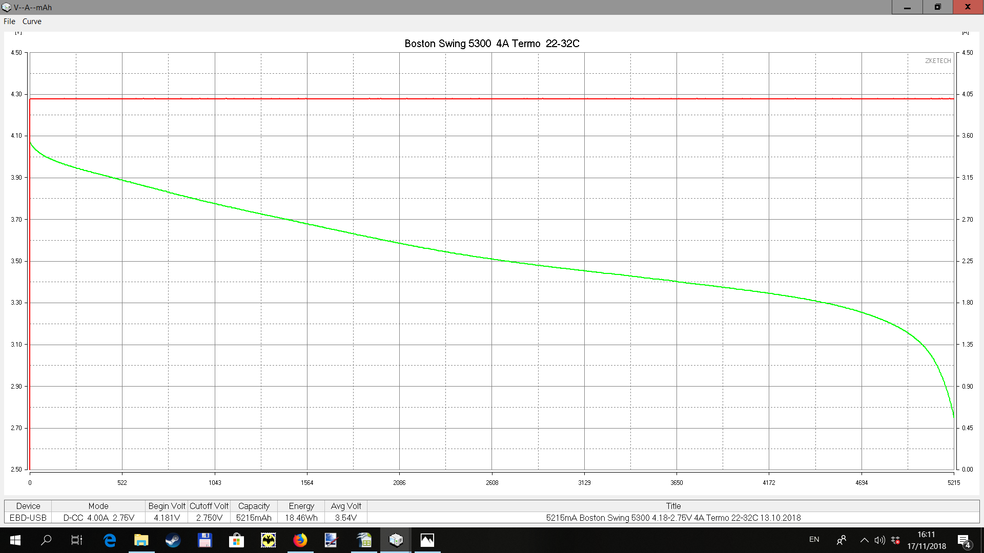 Boston Swing 5300 разряд током 4А, емкость 5215мА нагрев с +22 до +32С