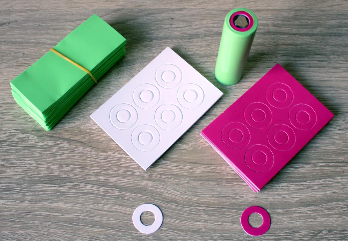 Использую защитные колечки с картона плотностью 350грамм. Имею штамп для их высечки и делаю нужное мне кол-во с того материала с которого считаю нужным или просят клиенты. Сейчас начал разделять большие партии одинаковых аккумуляторов разноцветными коллечками.