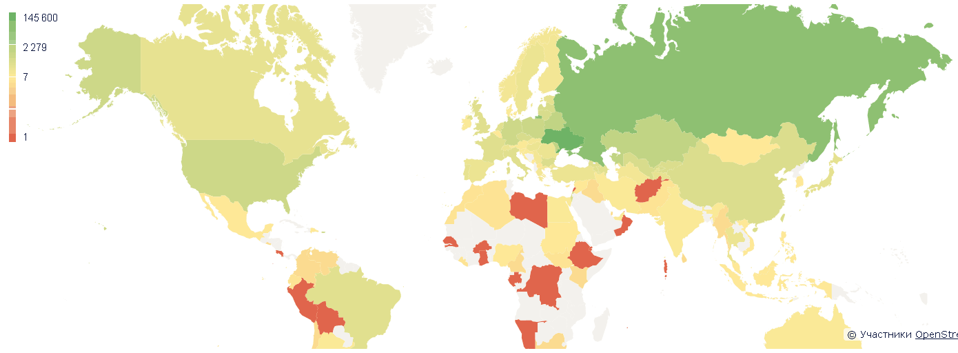 Карту Украины яндекс рисовал с ошибкой - пришлось дорисовывать самому. Наиболее активными стали Киевская, Харьковская и Днепропетровская области.