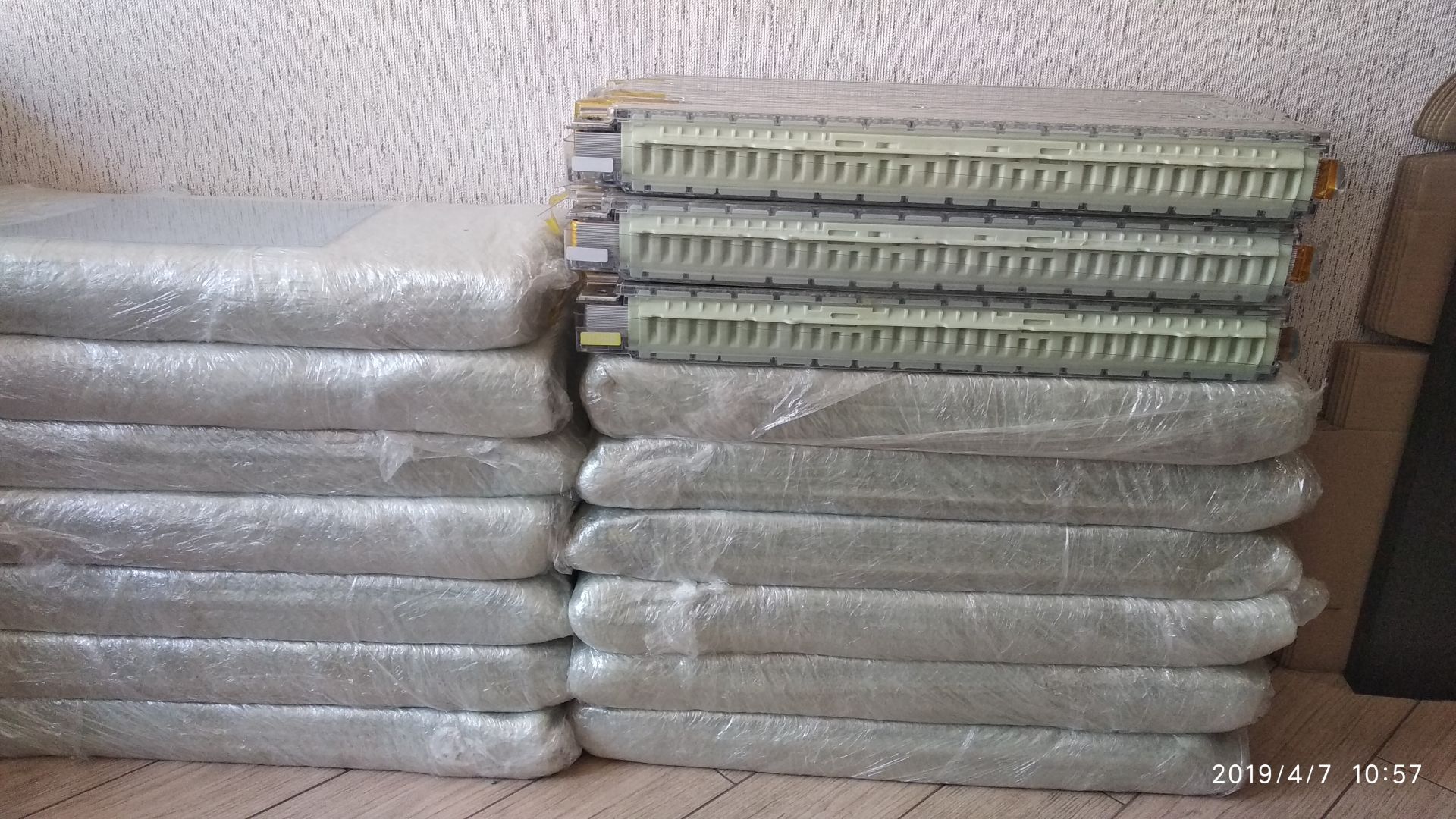 В наличии 10 модулей май 2017г с батареи 75кВт, модуля такие же как и в 90кВт батарее 2017г. Пробег машины до 500км. Емкость до 3В на ячейке, 239Ач. Цена 980$ .Торг