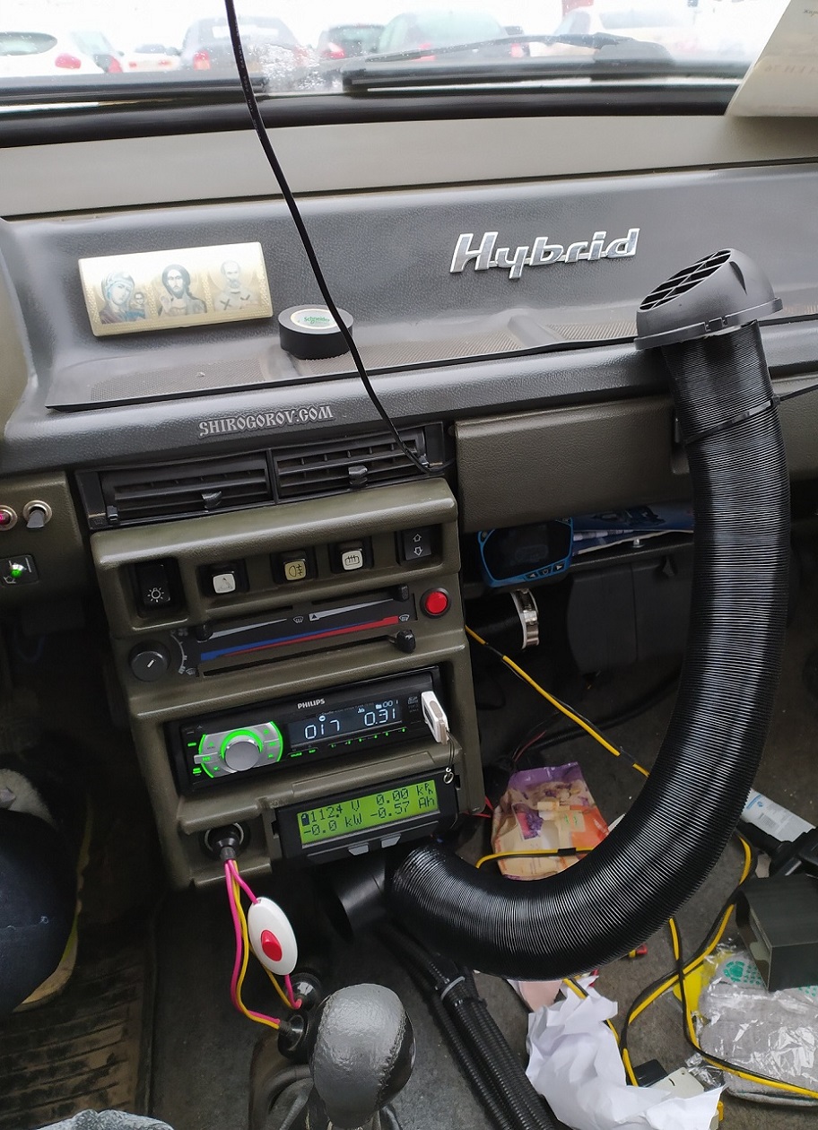 Удлинил воздуховод фена-автономки. Раньше фен дул в салон, пока салон не прогреешь, стекло запотевало. Теперь дует через тройник, часть воздуха идет в ноги, другая идет на стекло. И ногам тепло и стекло без намека на запотевание.