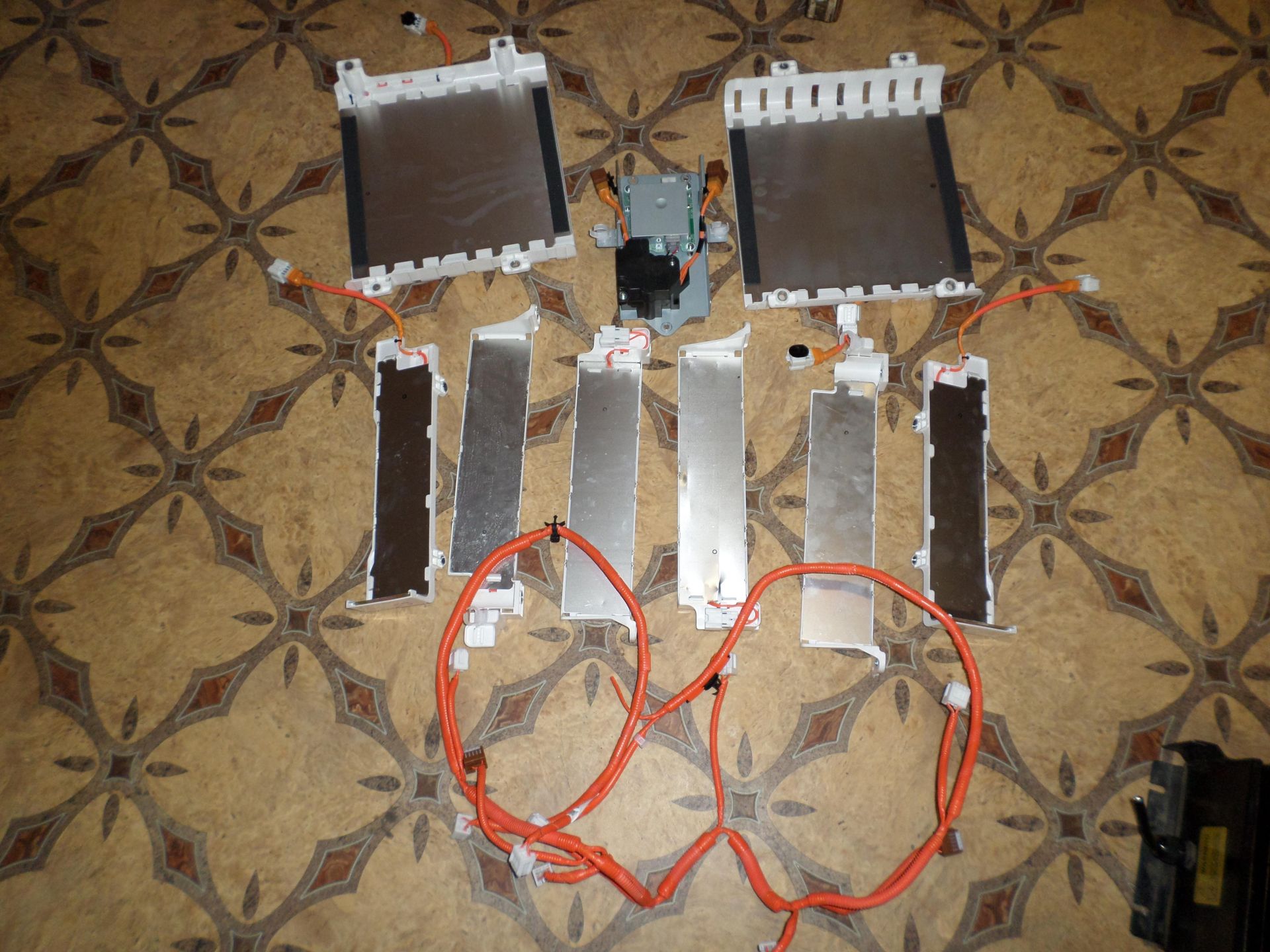 Продам систему подогрева аккумулятора Leaf. В комплекте всё, что на фото. 8 панелей, проводка, контроллер. Снято с рабочей батареи. 80$