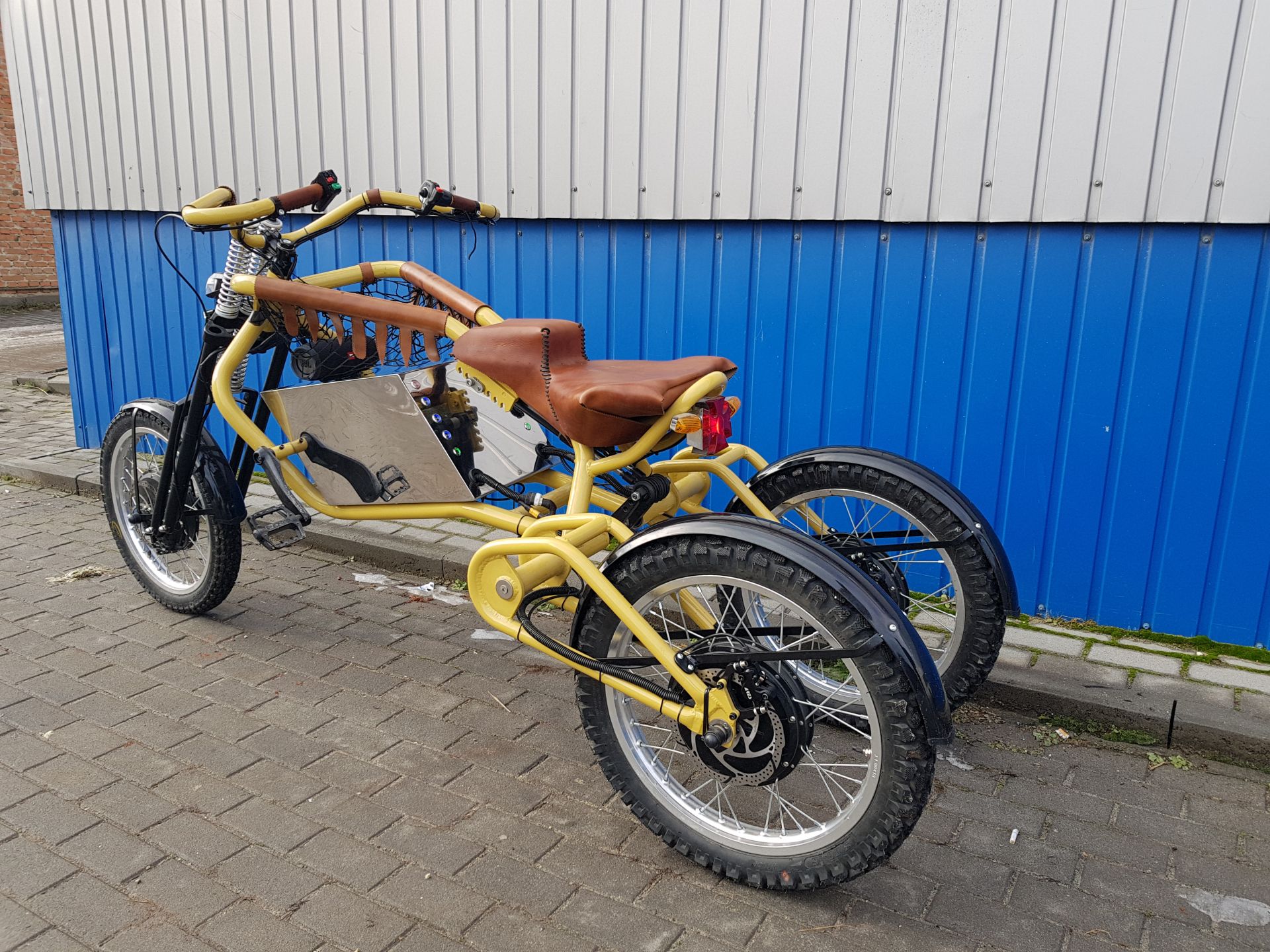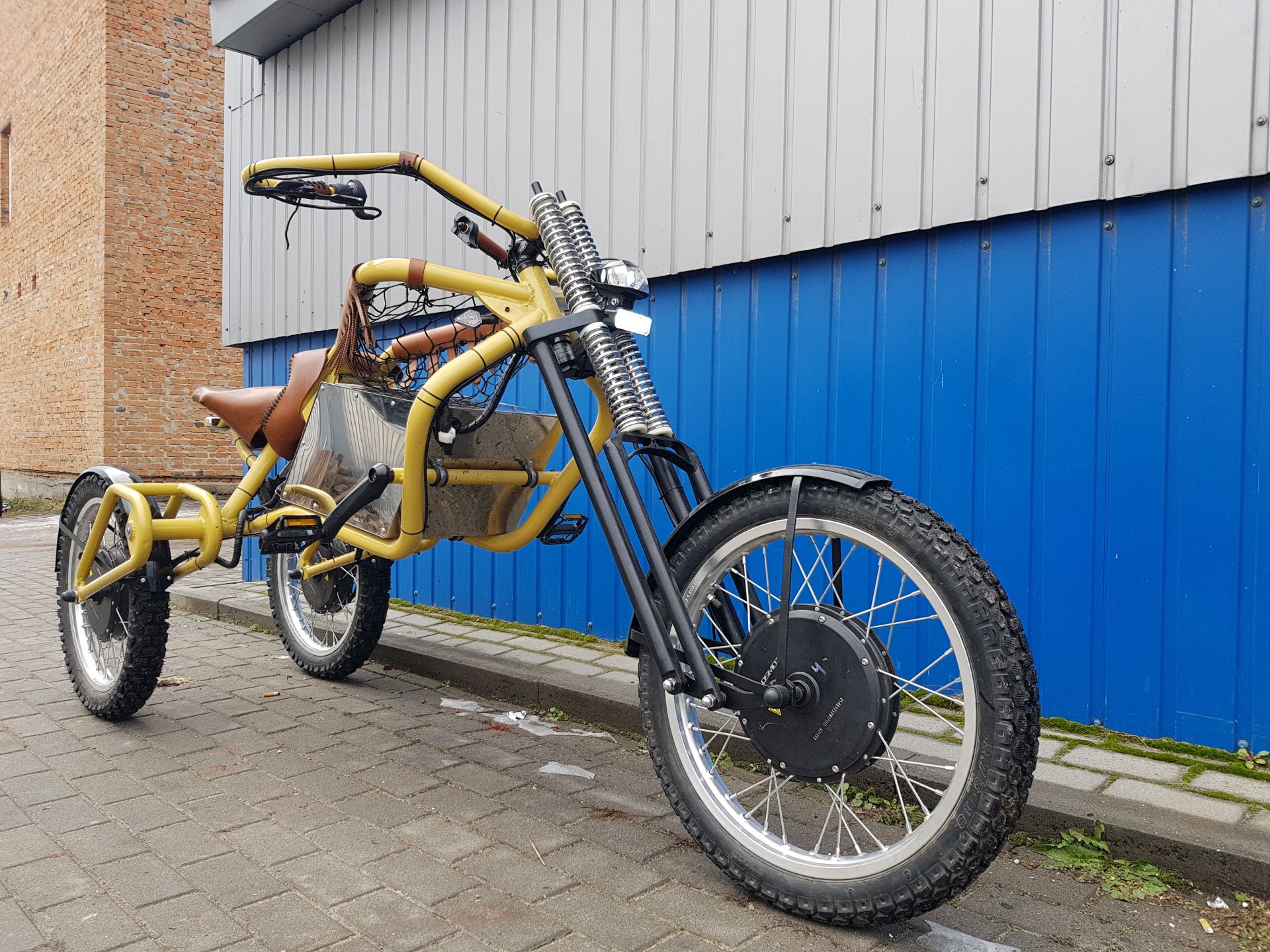 На протязці цих довгих трьох місяців, ми працювали над даним проектом. І як виявилось не все так просто. Під час тестів зламали дві вилки після чого зрозуміли, що потрібно виготовити власну, спеціально для цієї геометрії рами і трайка в цілому. За що і взявся наш механік. Також після тестувань виявили, що рекуперативних та механічних попереду гальм не вистачає, тому прийшлось приварити кріплення та встановити потрійні гідравлічні гальма, оскільки безпека водія для нас найважливіше. Протестували та поміняли багато контролерів для того щоб обрати найкращі, відносно ціни та якості. Багато часу зайняла робота над обшивкою рами міцною та досить твердою шкірою. Зпроектували і виготовили акумуляторну батарею, яка мала бути оптимальною між ємністю та розмірами бакса котрий дістався нам разом з рамою. А ще потрібно віддати належне нашому електрику котрий зумів поєднати між собою три мотори, три контролери та систему моніторингу. Одним словом, сил та часу трайк забрав багато, але нам подобався цей проект і ми раді, що над ним працювали.