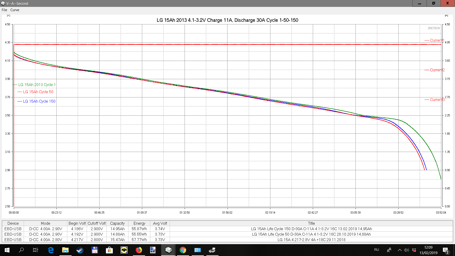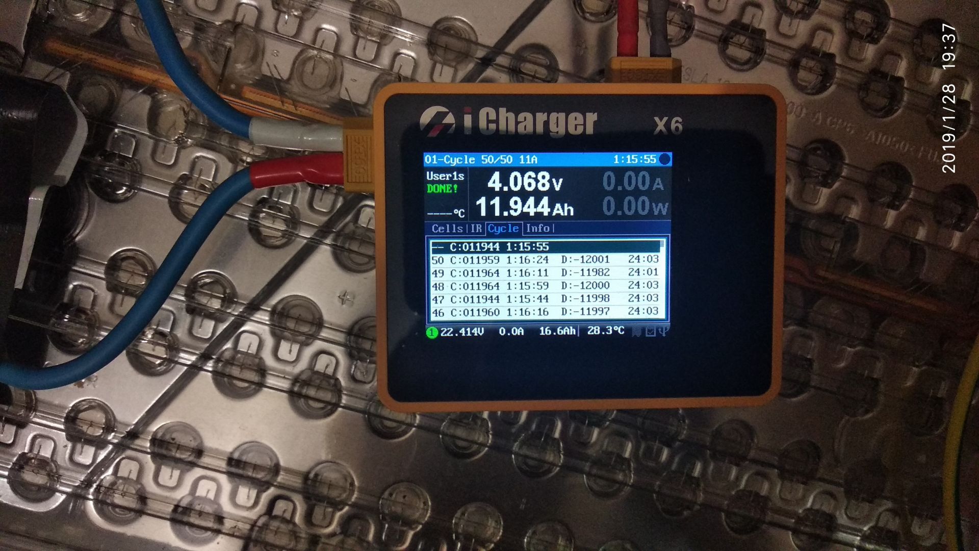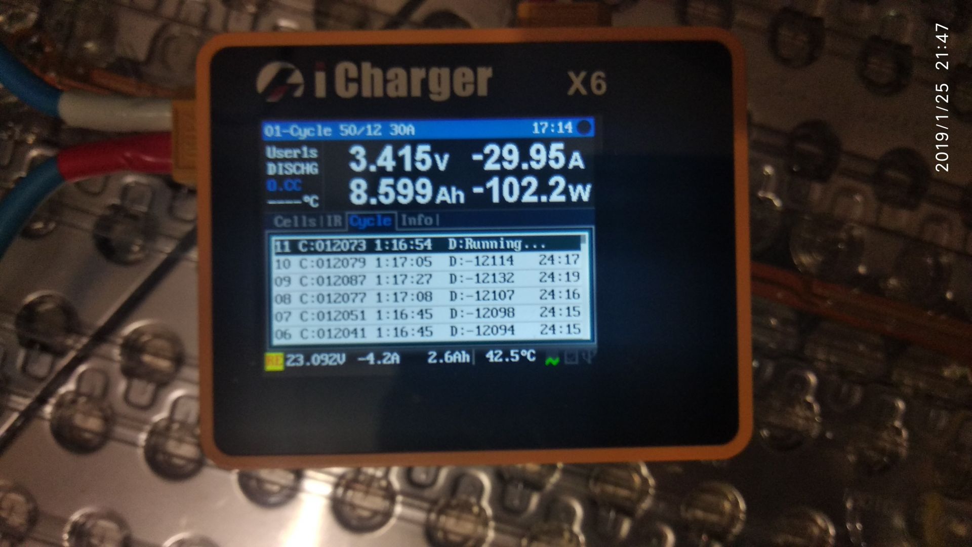 Начал гонять в циклах. Заряд 11А, разряд 30А