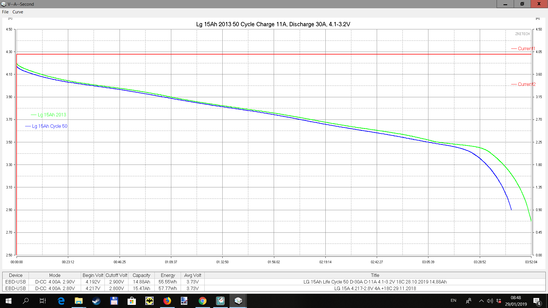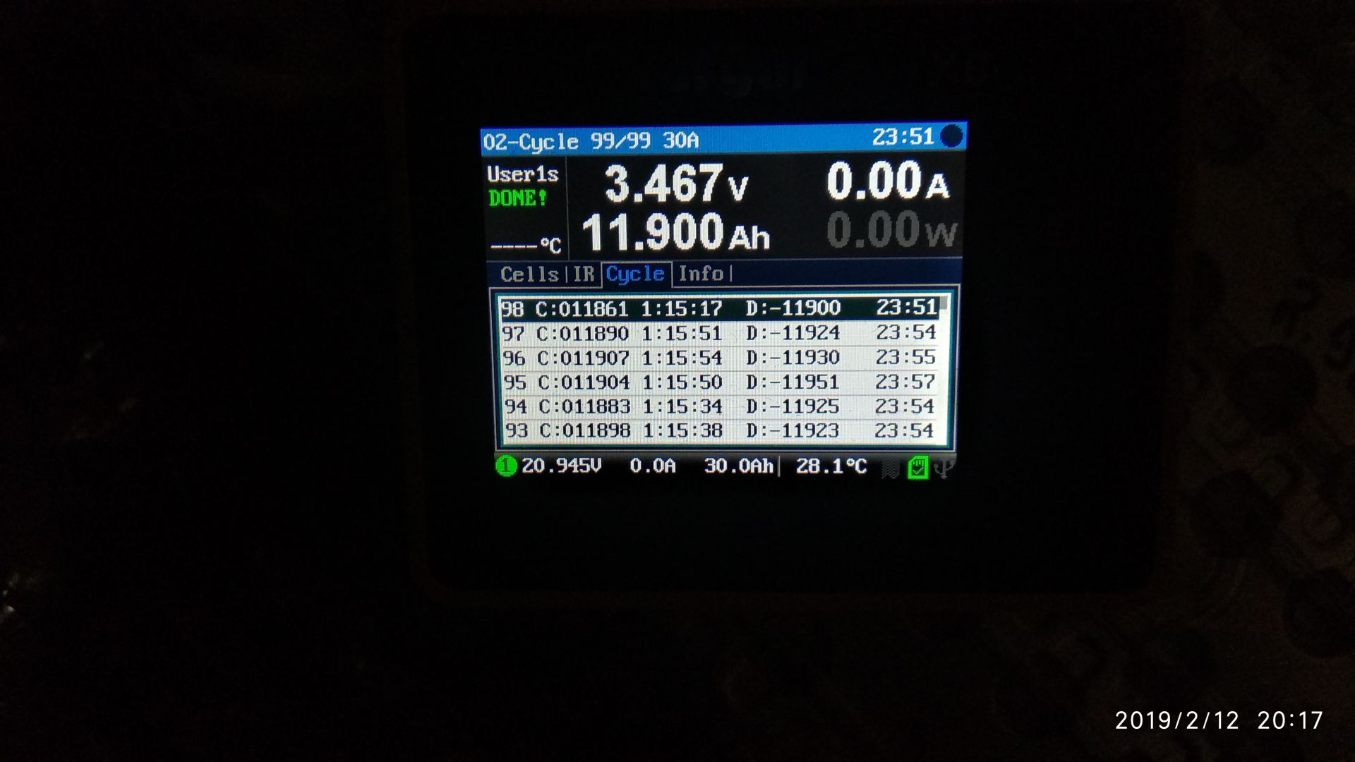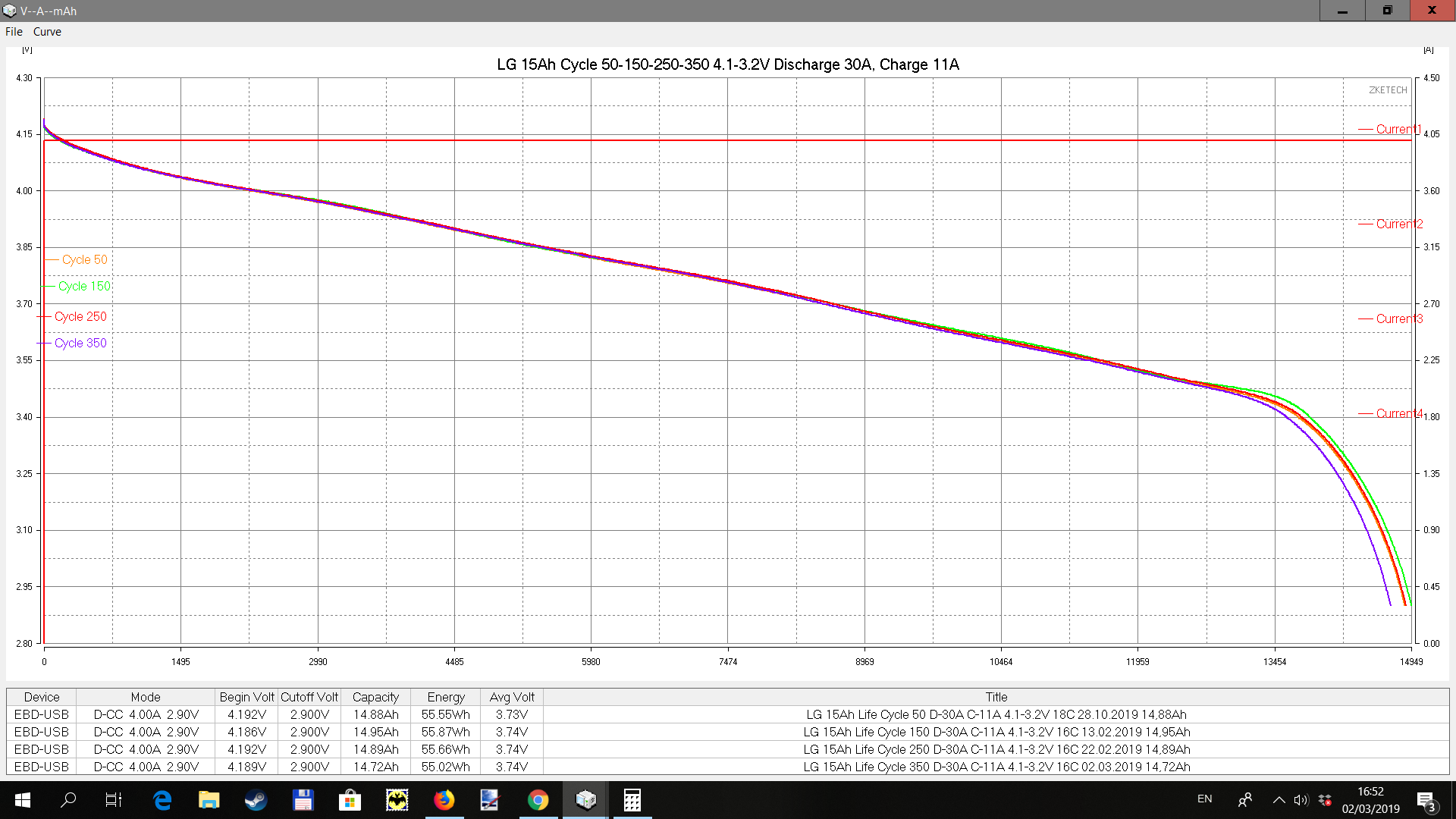 Начал гонять в циклах. Заряд 11А, разряд 30А
