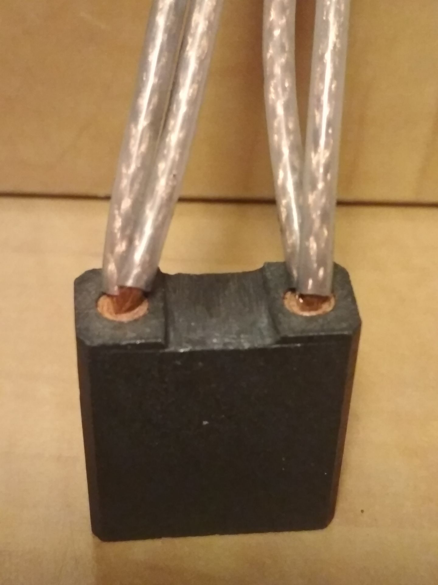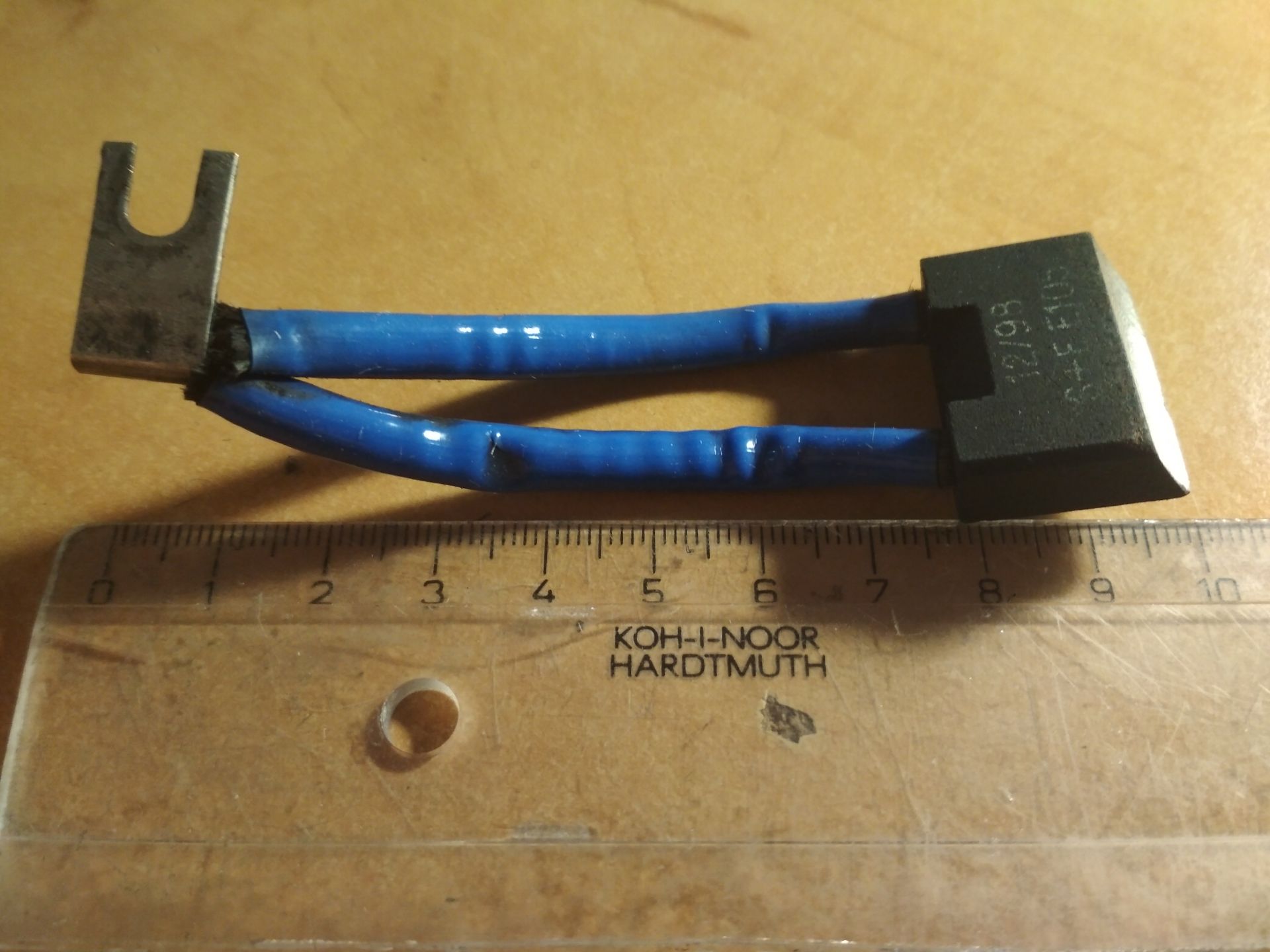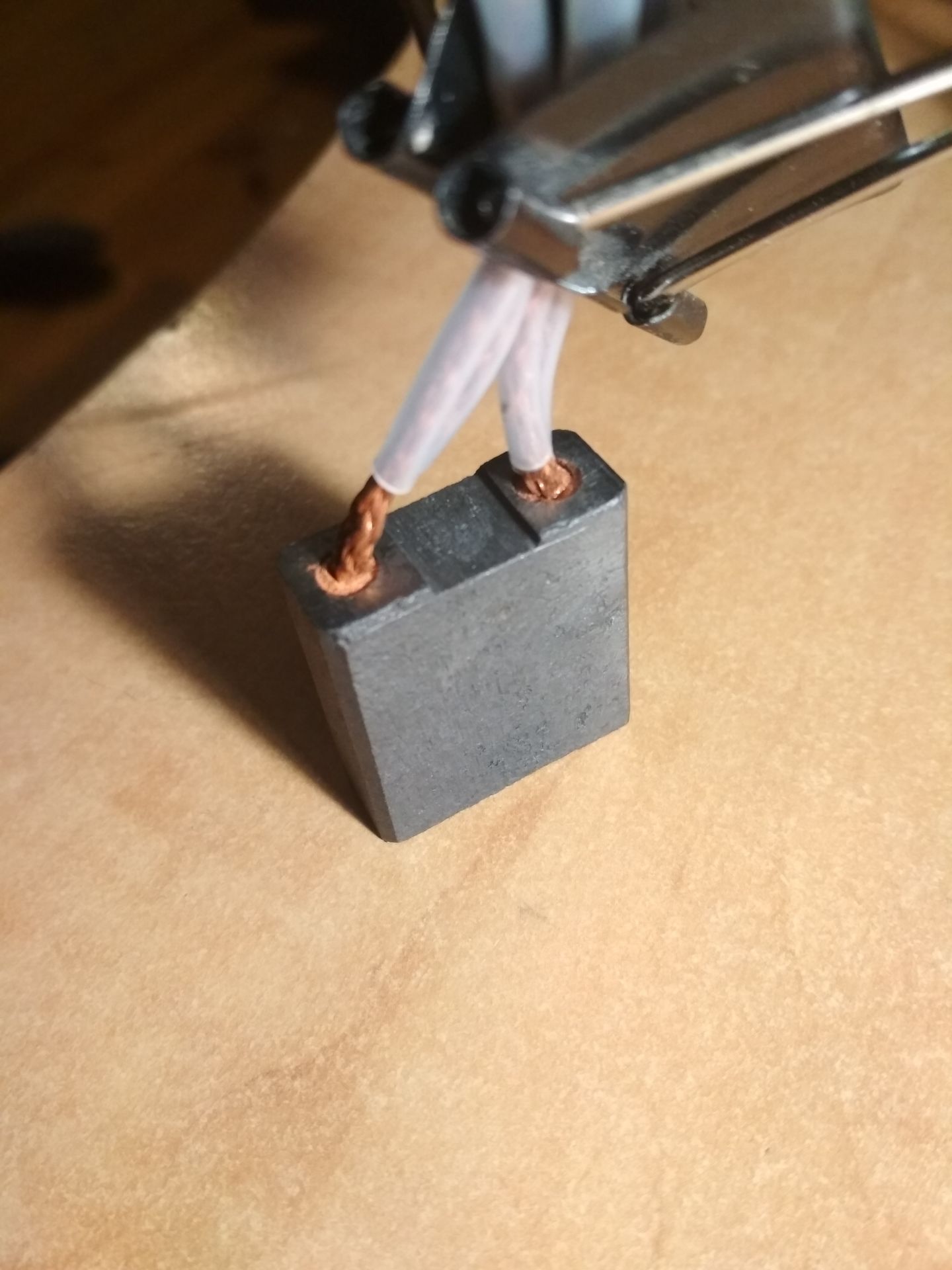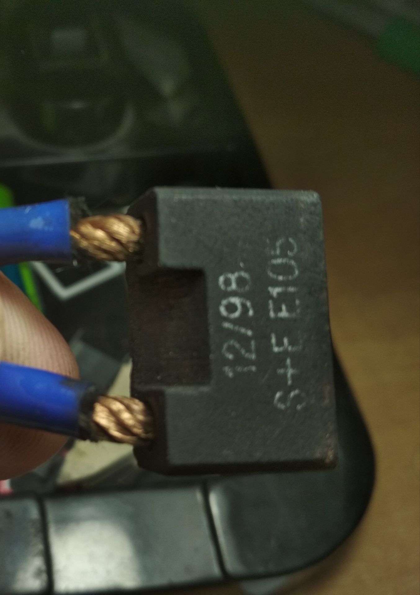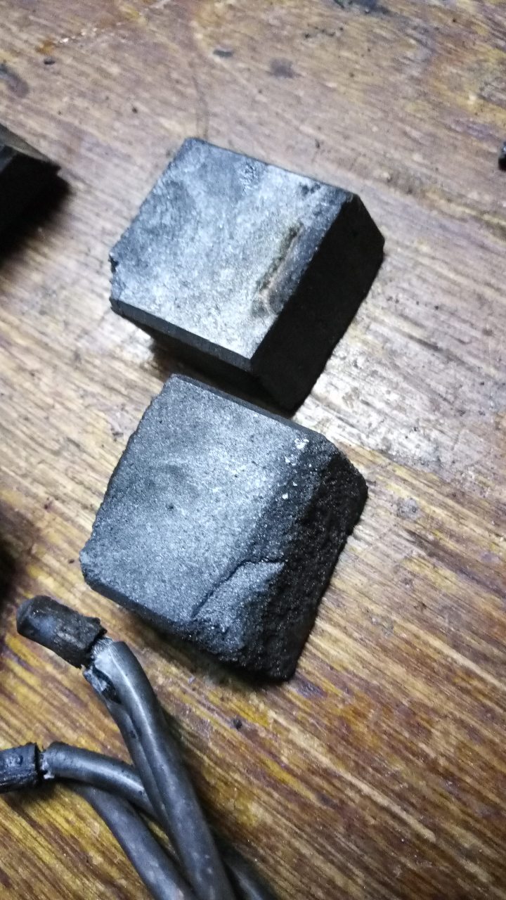 - Провод отгорел не в первую очередь (на фото видно - в каком состоянии рабочая поверхность щетки), а это неплохо, т.к. самое уязвимое место - в соединении провода и графита,