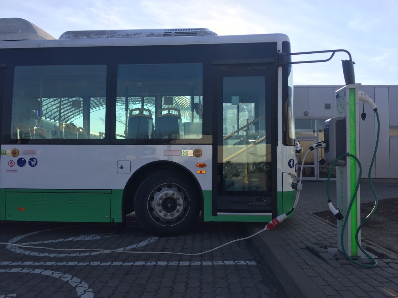 Тут же зарядные столбы кеба с качественной дорогой защитой.