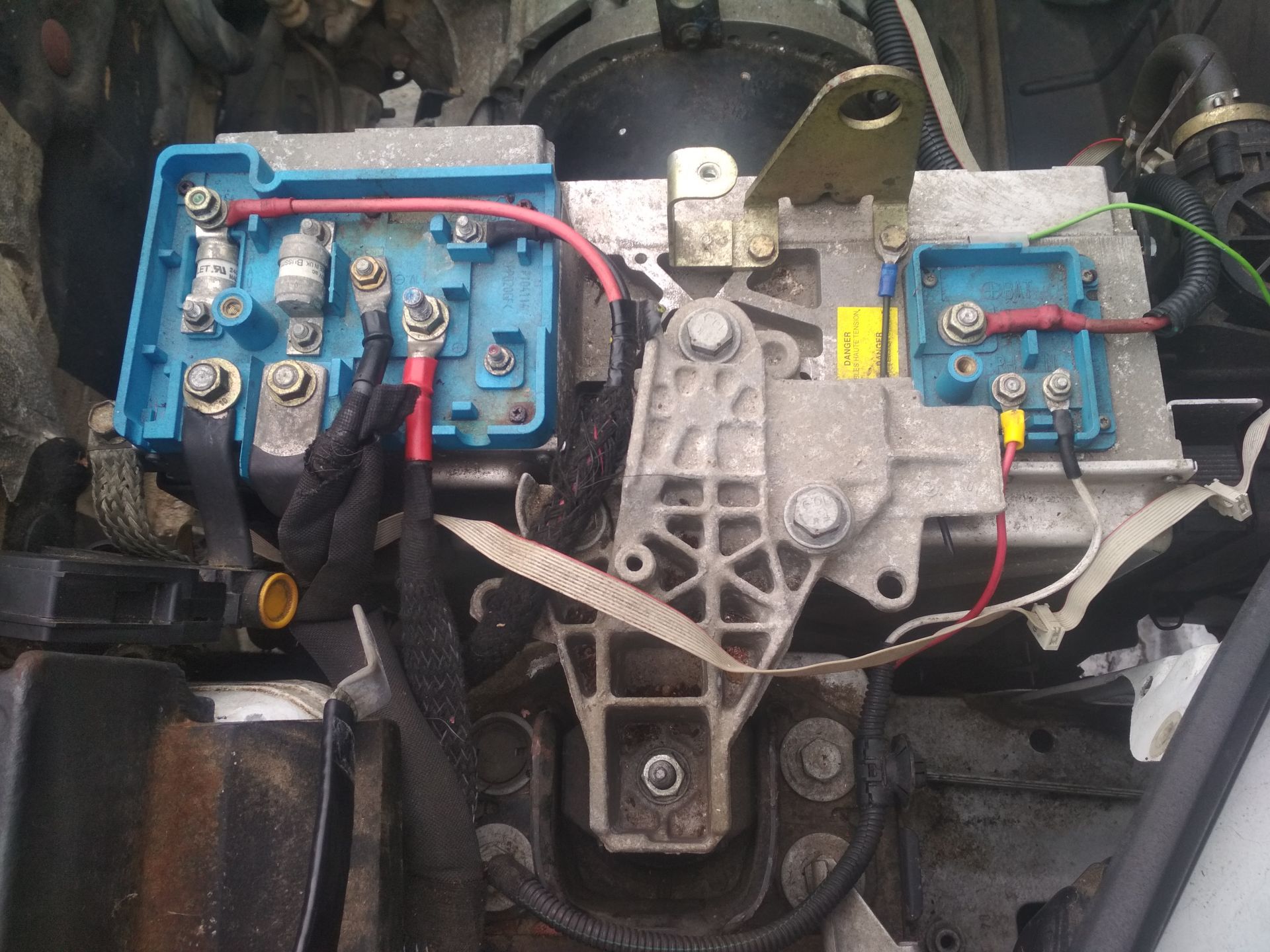 Вчера и сегодня - настоящий прорыв! Залили масло в редуктор, сняли машину с кирпичей ), вытянули силовые провода в багажник, подключили две параллели по 7 кВтч - всего 14 кВтч. Наконец машина на ходу, немного покатались с детьми (без номеров - тихо и недалеко)). Теперь главная задача - поставить на учёт.