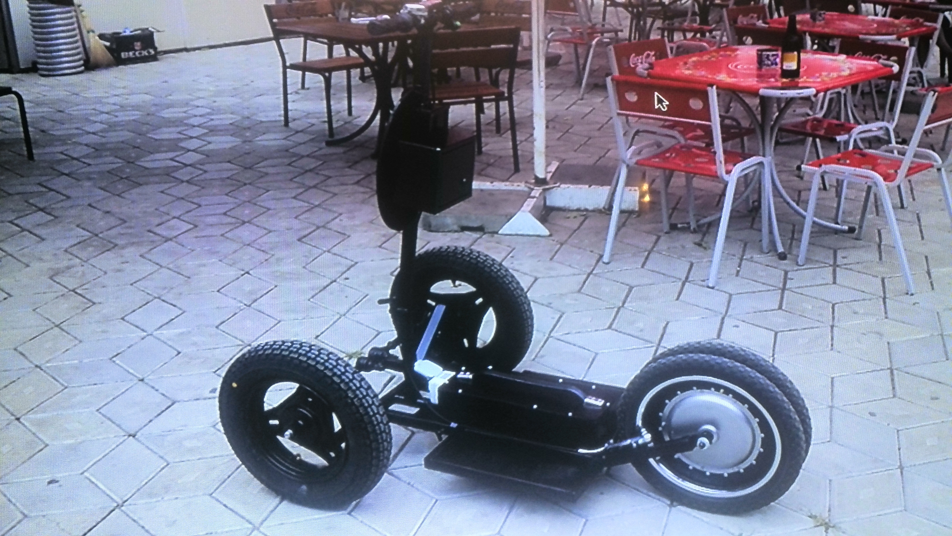 Технические характеристики: длина 2000 мм, ширина 1000 мм, масса 70 кг, мощность двигателя 2 по 500 вт, напряжение 48 вольт, батарея 48 вольт 20 а/ч гелевая, пробег на одной зарядке 50 км. Себестоимость постройки 1000 долларов. Грузоподъёмность 150 кг. Максимальная скорость 45 км/ч.