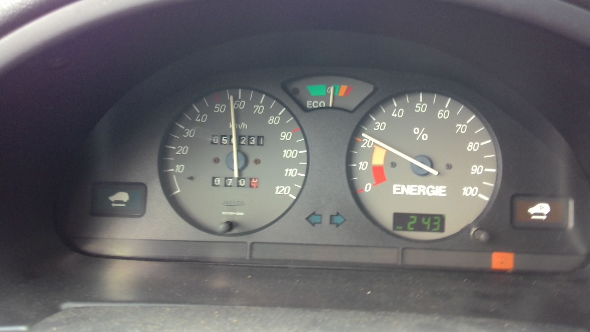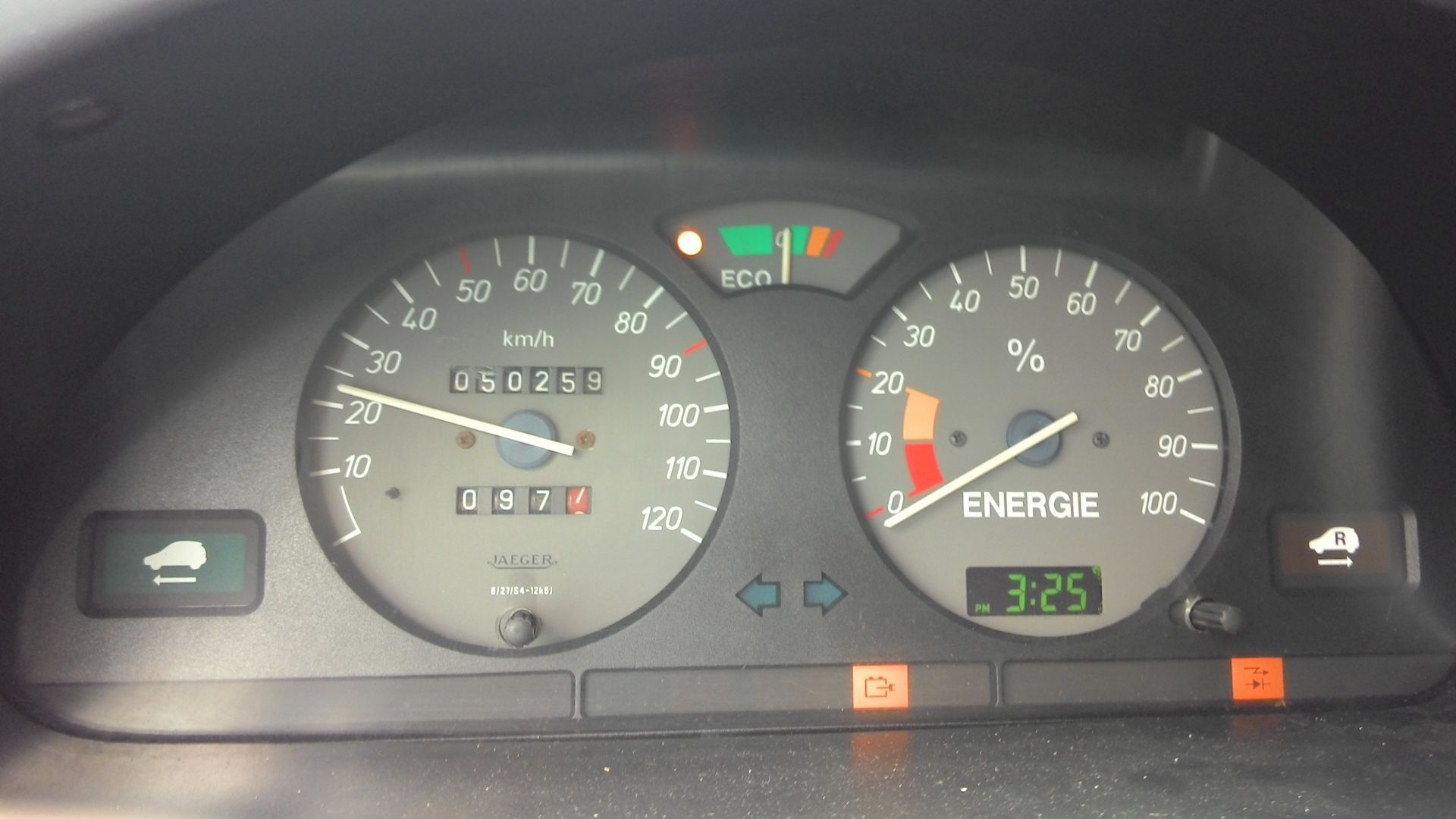 6. Заметил еще, что стрелка силы тока при 55км/ч намного ближе к 0, чем к середине зеленой зоны (50А) на всех фотках, а по ровной дороге, с нормальным давлением, машине нужно 40-45А для такой скорости!