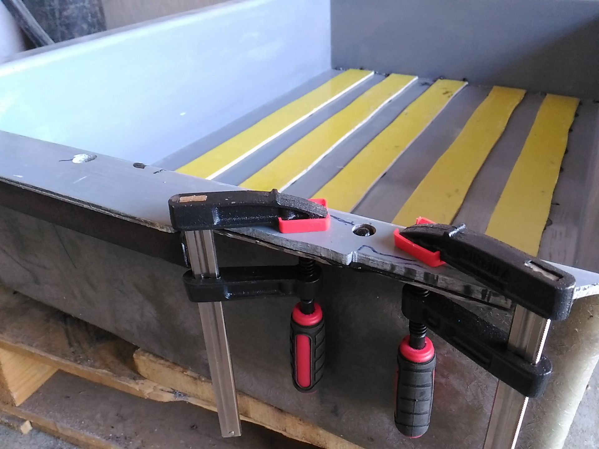 К ящику по бокам приклеил на герметик "Крокодил" (очень мощная штука) уголки, распиленные из квадратной трубы. Стандартный уголок не брал, т.к. у него внутренние плоскости немного под углами и на концах вообще закруглённые.