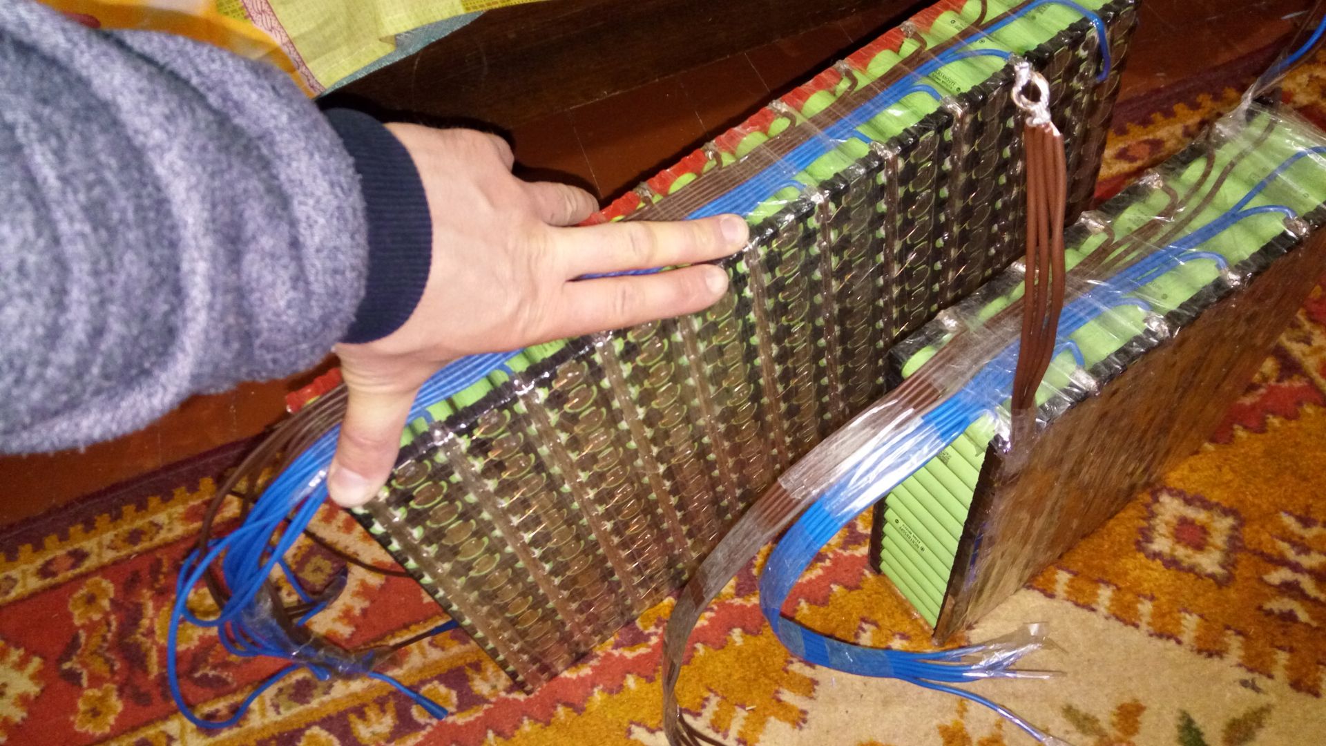 Акукмуляторы паял 22s 27p, так как у этих аккумуляторов основная емкость по ,,заниженому вольтажу,, отдается.да и к тому же хотел увеличить максимальную скорость( 85км меня не очень устраивало)..итог, вышел аккумулятор со средней точкой 81в, 78а.ч. Полной заряд делаю до 89в( я ограничил заряд на 89в, а разряд до 66в, чтобы количество циклов было больше,ну вы поняли о чем я) то есть на 1 элемент разряд не ниже 3в,заряд 4,00в... вес такого аккума вышел 35кг( могу сбрехать на чуть -чуть).В то время как свинец со своими 40а.ч. весил 80 кг. Пайку делал аккуратно естественно и проволочкой 0.5 сечением( стырил у нашего системного администратора на работе)...Также делал с холдерами,чтобы продувались. Вовремя пайки соблюдайте осторожность,так как я после того как спаял аккумы,нечаянно коснулся до выводов ,,+,, и ,, -,,....У меня как раз рана на пальчике была(порезал когда провод чистил), в итоге , я часа два не мог ложку сахара в чай кинуть..))))) :laugh: тряслись руки как у алкаша..ну,короче,после подключил бмс,настроил и для начала подключил свинцовую родную зарядку на 87.5В( так на ней написано,но выдавала 86в)