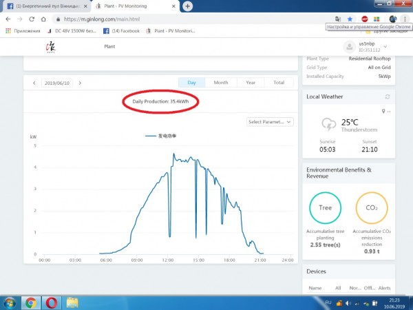 Сегодня установлен новый рекорд дневной выработки СЭС 5КВт :hurra: