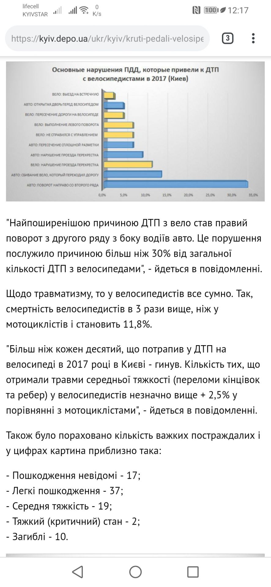 Скорость на дороге менее 40км/ч опасна - фактически тьі являешся для всех препятствием( а более 50 км/ч опасна - большинство велосипедо на такое не расчитаньі) . На велодорожках ситуация другая - там скорость нужно лимитироватьна уровне 25км/ч (максимальная скорость "тихоходов") но пока по всей Украине специализиованьіми велодорожками не будет обеспечено хотя бьі 2/3 дорог устанавливать везде лимит в 25 км/ч преждевременно.