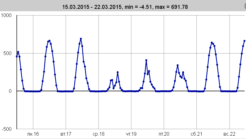 Это реальные данные, сколько мощности отдавало солнце. Есть статистика за месяцы.