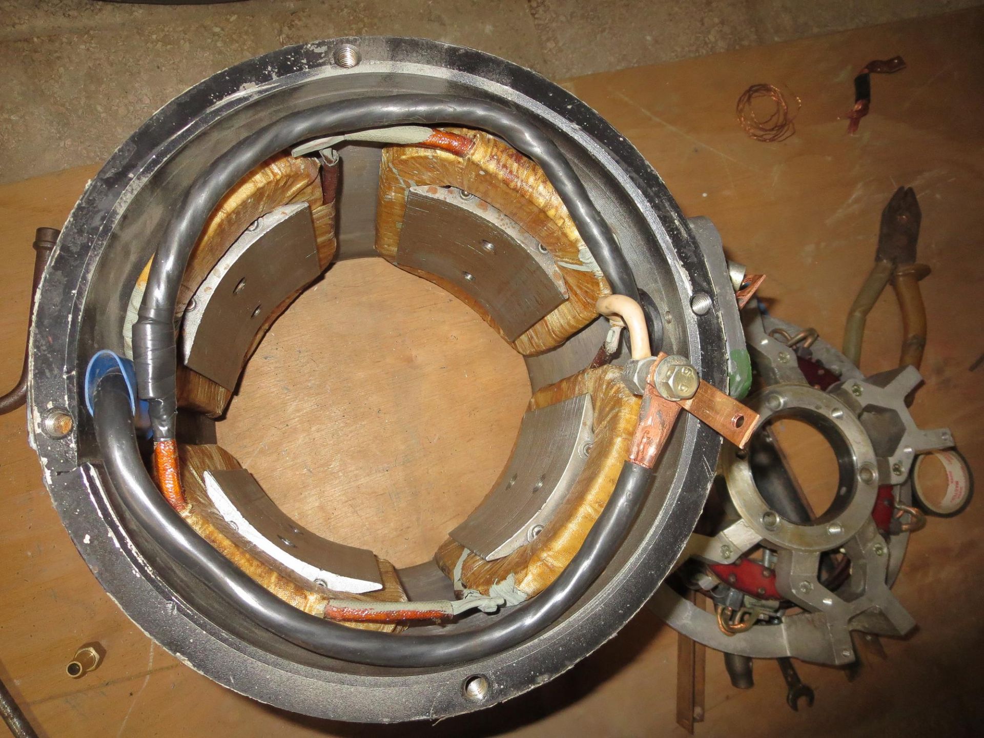 Первый вариант - надеялся обойтись "малой кровью". Мотор даже закрутился в тестовом режиме, я обрадовался и начал делать основательно. Когда закончил, подключил - мотор стоит. Хорошо, Юра подсказал, влияет направление магнитного поля полюсов ОВ. При моем варианте подключения мотор не мог заработать.