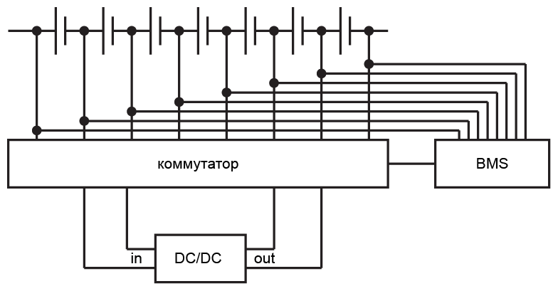 У випадку передачі напряму комірка в комірку , потрібно буде зробити десяток перемикань,бо як правило нормальні комірки всі мають один рівень напруги , та й якщо різниця напруги між найсильнішою і найслабішою буде 0,1 Вольта - то це якраз трабли з якими важко боротись