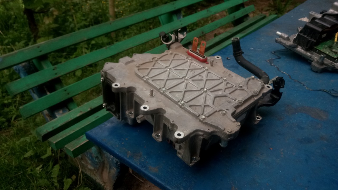 Процес потихоньку движется, благодаря владельцу того самого конструктора у меня появился инвертор. Буду краток, поехал в Жмеринку провести ТО лифа, и мне подарили много всякого добра с 2012 годика, не работающего естественно. а именно сгнившие блоки управления, приборки и самое главное инвертор. конвертор DC-DC. Когда то год назад мне отдали инвертор с лифа 2014 года, полностью работающий, я понятия не имел что с ним делать потому отдал в коледж где учился, пусть будет, пригодится, тогда как раз к-750 переделали на электрику. И вот сегодня я о нем вспомнил, привез все поломанное добро, взамен на работающий инвертор) Студенты как раз построили электротаврию, но об этом позже) Теперь есть самое основное, мотор, инвертор, кпп. Батарея будет немного позже, подкоплю денег.