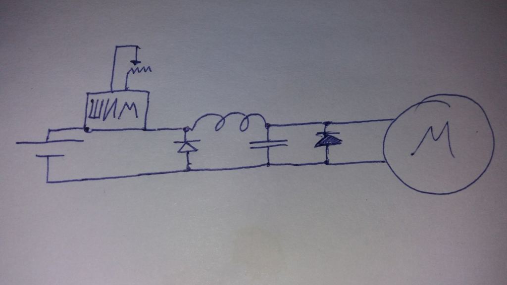 Если на сам эл.двигатель ставить ШИМ религия не позволяет то ставьте на дроссель. Во вложении картинка; Подберете дроссель под ШИМ по частоте и мотор будет работать как обычно на постоянке.