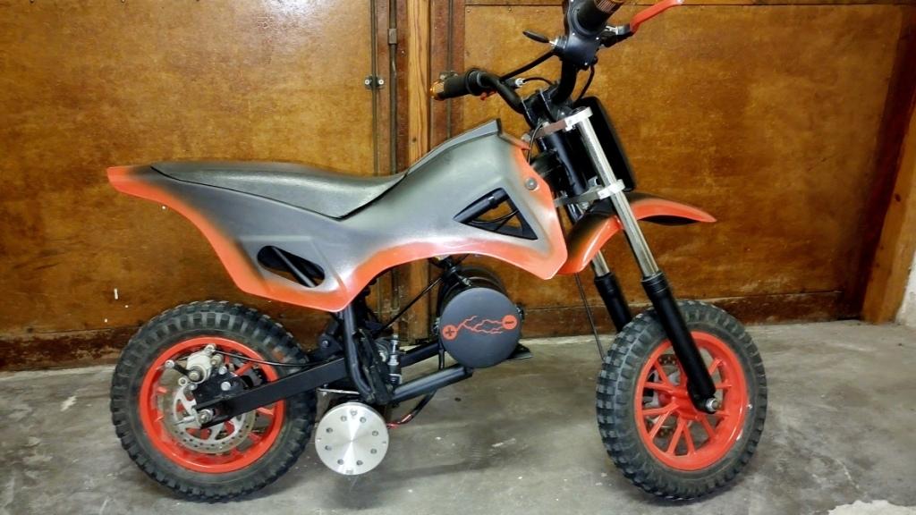 Вот решил выложить, может кому будет интересно. Попали мне в руки два минибайка,один асфальтовый с электроприводом , в котором был живой мотор щёточный 250 Вт, 24 В. Его отдал мне сосед со словами: "дети с него падают постоянно , делай с ним что хочешь!". А второй сосед как то отдал старый "миникросс" с убитым бензиновым мотором.Вот эти "красавцы"-