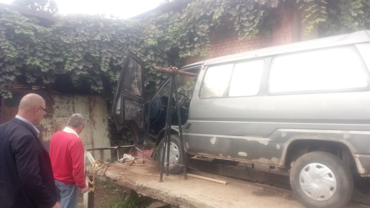 Вот бусик и проехал первые метры! Нормальное видео будет немножко позже, так как много времени занимает робота, учеба ну и еще много чего) В первую очередь отмыли ковер который лежит на полу, так как на нем в ближайшее время все будет стоять и скорее всего на него потом не будет времени, но не только из-за естетики положили ковер,а из-за того, что на него поставили батарею, все таки ковер мягче чем батарея будет стоять на металле, причем не ровном, батарейку перевезли всю и просто поставили для первых тестов, напряжение на ячейках на момент установки 3.53 вольта, всего заряд 338.9 вольт, приблизительно 30% остаточного заряда. Двигатель валялся просто на балке, вроде как договорились с человеком,чтобы пока я на роботе,а это с 9:00 до 19:00, то приварили мотор и выставили, не за бесплатно конечно. Но человек как то забегался и в итоге две недели машина простояла. Решено было взять отгул и заняться самостоятельно. В итоге за день прикрутили двигатель и сделали первоначальное крепление, что б можно было ехать, батарею подключили временно на тест в ручную, с помощью двух лампочек на 70 ват организовали предзаряд, и пальцами потом прикрутили провод, поставили маленький акумулятор на 7 ампер часов , от которого запитали инвертор и подключили от павер банка платку управления. А вот педаль газа оказалась с коротким проводом, а так как ехать хотелось и чесалось,то решили при помощи проволки и стяжек временно примотать возле ручки кпп и сделали ручное педальное управление Тормоза как бы есть, но как бы нету, нужно прокачать, но ехать то хочется, потому решено пробовать. Програмно значение выставили максимум на 15% мощности, это примерно 8-9 квт или примерно до 13 лошадиных сил , на всякий случай если что то где то отвалится, что б не уехать в панике в стену. Как оказалось это как бы и мало, но как бы и тронуться покататься достаточно. И вот первые метры самостоятельной езды!