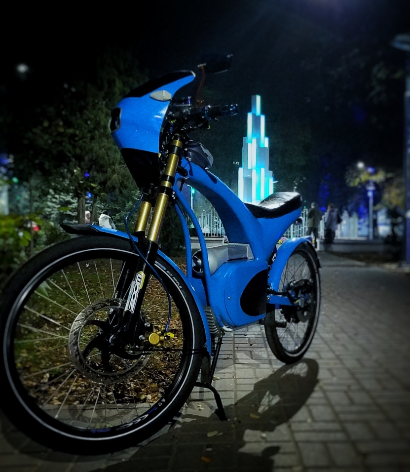 На форуме тема есть. Если кратко, то собрал легкий городской байк. Из основных особенностей. Стальная рама. Криволинейные поверхности изготовлены с использованием самодельной прокатки " английское колесо".