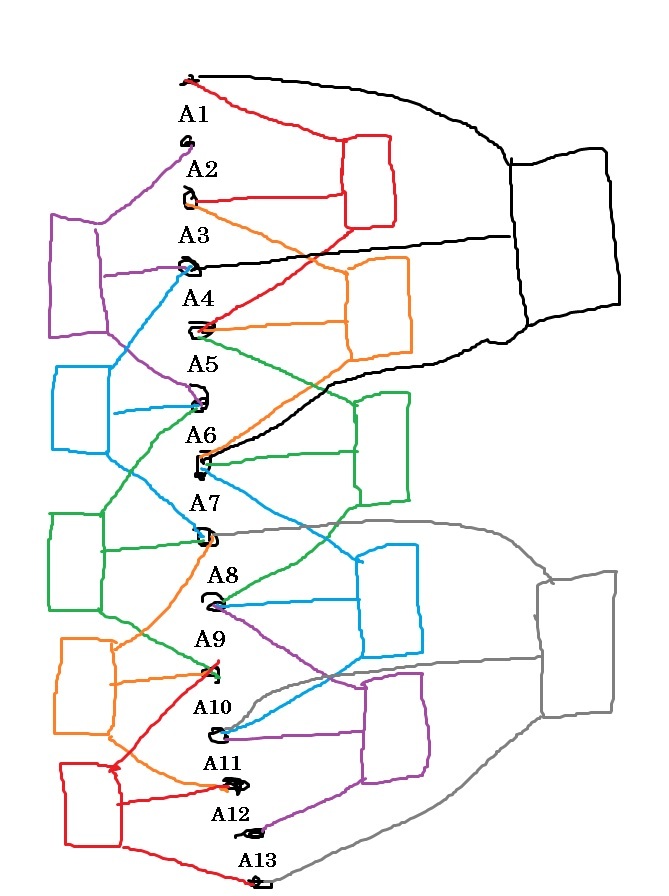 Понадобится 10 балансиров балансирующих пары ячеек, и 2 балансира балансирующих тройки ячеек. Т.е. надо то же самое количество балансиров (13-1) как если бы мы балансировали по старому(по 1 балансиру на две рядом стоящие ячейки).