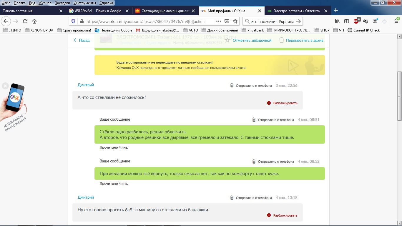 Начиная с 22 декабря по сегодняшний день на олх(благодаря тому, что указал 18 год) объявление набрало почти 80 тыс просмотров. Реклама, в моём случае ТОП на 30 дней, не добавила абсолютно ничего)) На RST для сравнения сегодня всего 1610 просмотров. В ходе данного "исследования" выяснилось, что примерно 0.2% населения Украины узнало про это авто. Кстати в объявлении была указана ссылка на мою тему постройки. Интересно узнать у админов, как там статистика по сайту хоть немного поднялась?)) Немного забавных комментаторов: