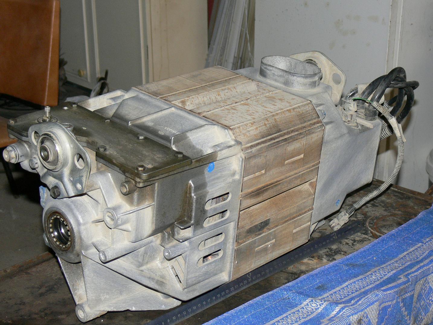 Выкладываю имеющиеся несколько фотографий снятых после приобретения комплекта.Я попробую найти в своих записях,когда-то кажется Романтик скидывал мне ссылку с параметрами этого комплекта.Выкладываю обнаруженные записи:мотор SA18 LeroY Somer,мощность15,5-28 кw,6500об/мин,180Nm.Батерея стояла 162в/100а/ч.Машина весом 1966кг развивала скорость 95 км/ч.В блоке електроники имеется:контролер Sagem OEM Single-IGBT controller 300A,DC/DC 14,1v/70a,зарядка на 3kw Sagem OEM.