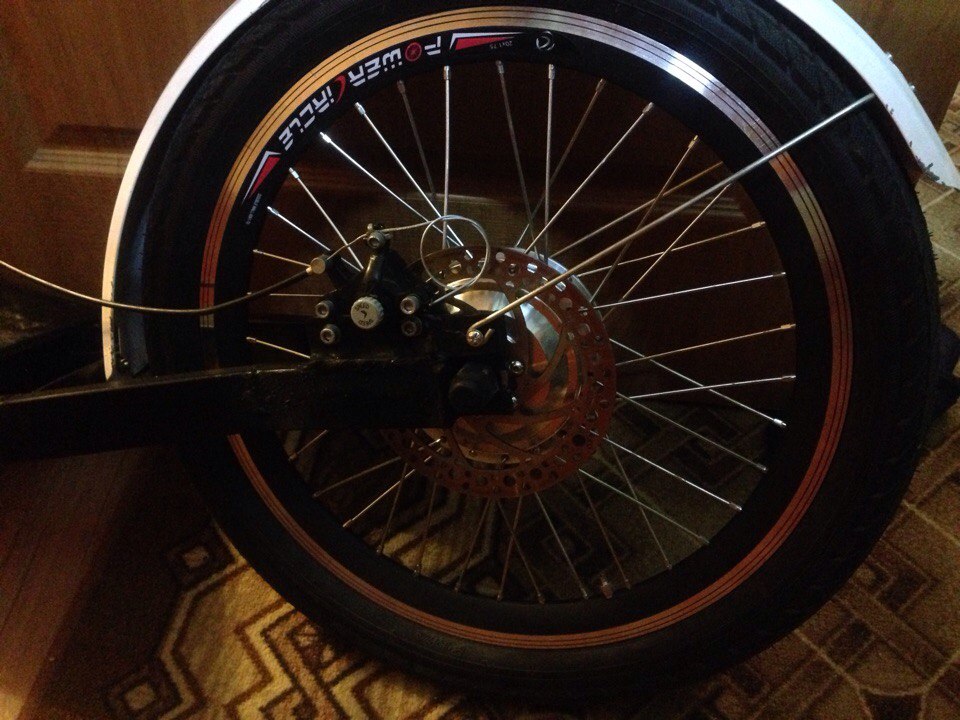 Мотор заспицован в обод 20" с усиленной спицей.