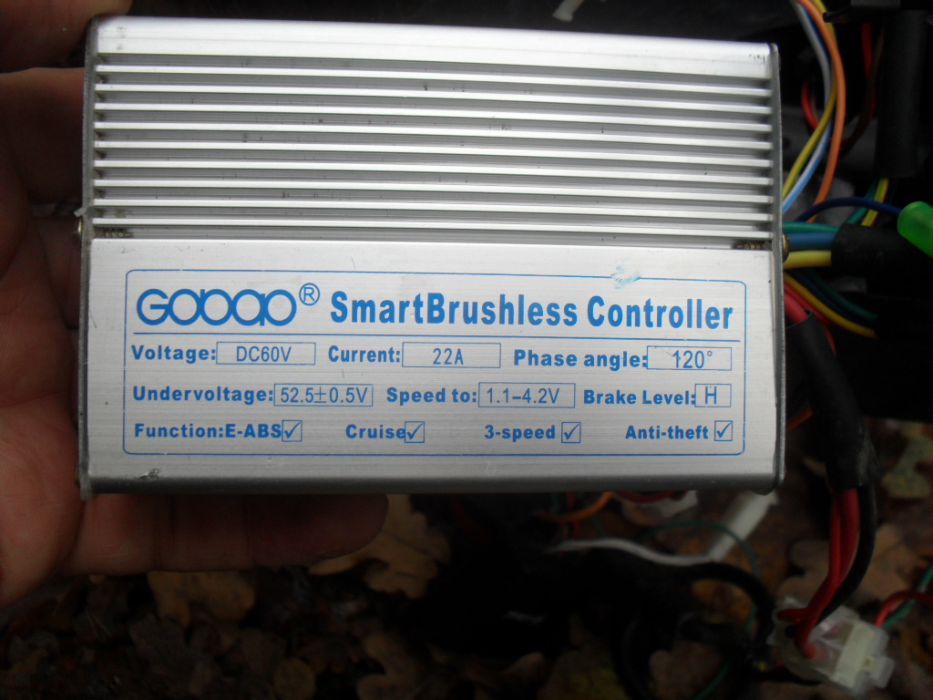 По паспорту 350Вт 60Вольт. Таких багато продано в Україні, але чомусь інформації по них дуже мало. Постало питання заміни акумулятора свинцевого 12Аг на літій-полімер 29Аг 16-17S. Потрібно сконструювати саму батарею і заодно покопатись в нутрощах. Зарядний пристрій до свинця