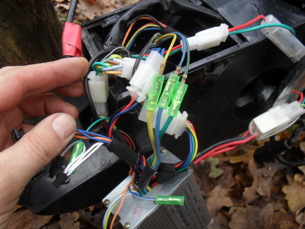 Вилка там действительно муляж.Проводов много лишних с контроллера там потому что должна подключаться сигнализация и освещение с поворотами.Разьемы там нестандартные совершенно.Круиза там скорее всего нет,это что то другое.У меня аппарат немного не такой,двиг 1квт и контроллер 30А.