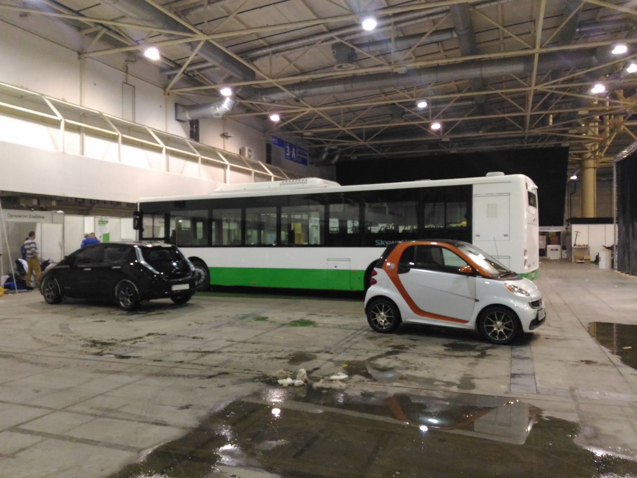 А рядом два электромобиля, к которым приложили немало усилий члены клуба. В Лифе вообще ёмкость аккумулятора увеличена. А за ними первая в Украине демонстрация элеткробуса Скайвел.