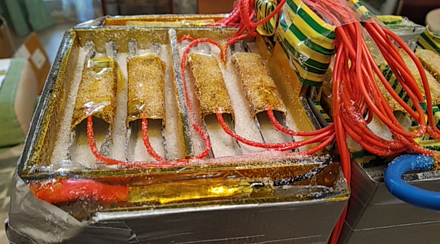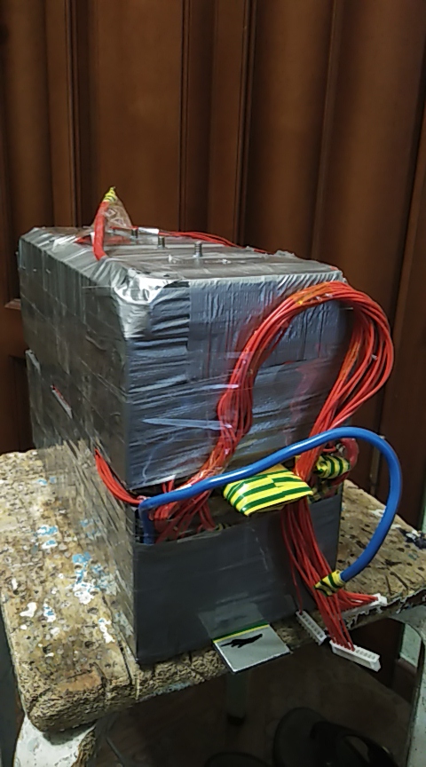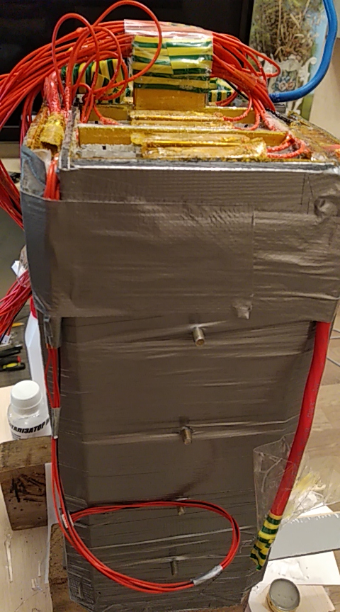 Каждый пакет предварительно проматывался скотчем. Потом прикладывался на двусторонний скотч и приматывался поочередно (то скотчем то армоскотчем) к остальной батарее.
