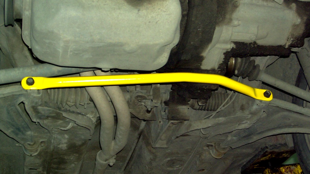 У первого Гольфа нет подрамника передней подвески и переднее крепление рычагов реализованы практически консольным кронштейном прикрепленным к лонжерону, поэтому нижняя растяжка улучшает поведение автомобиля и бережет кузов усиливая жесткость этого узла.