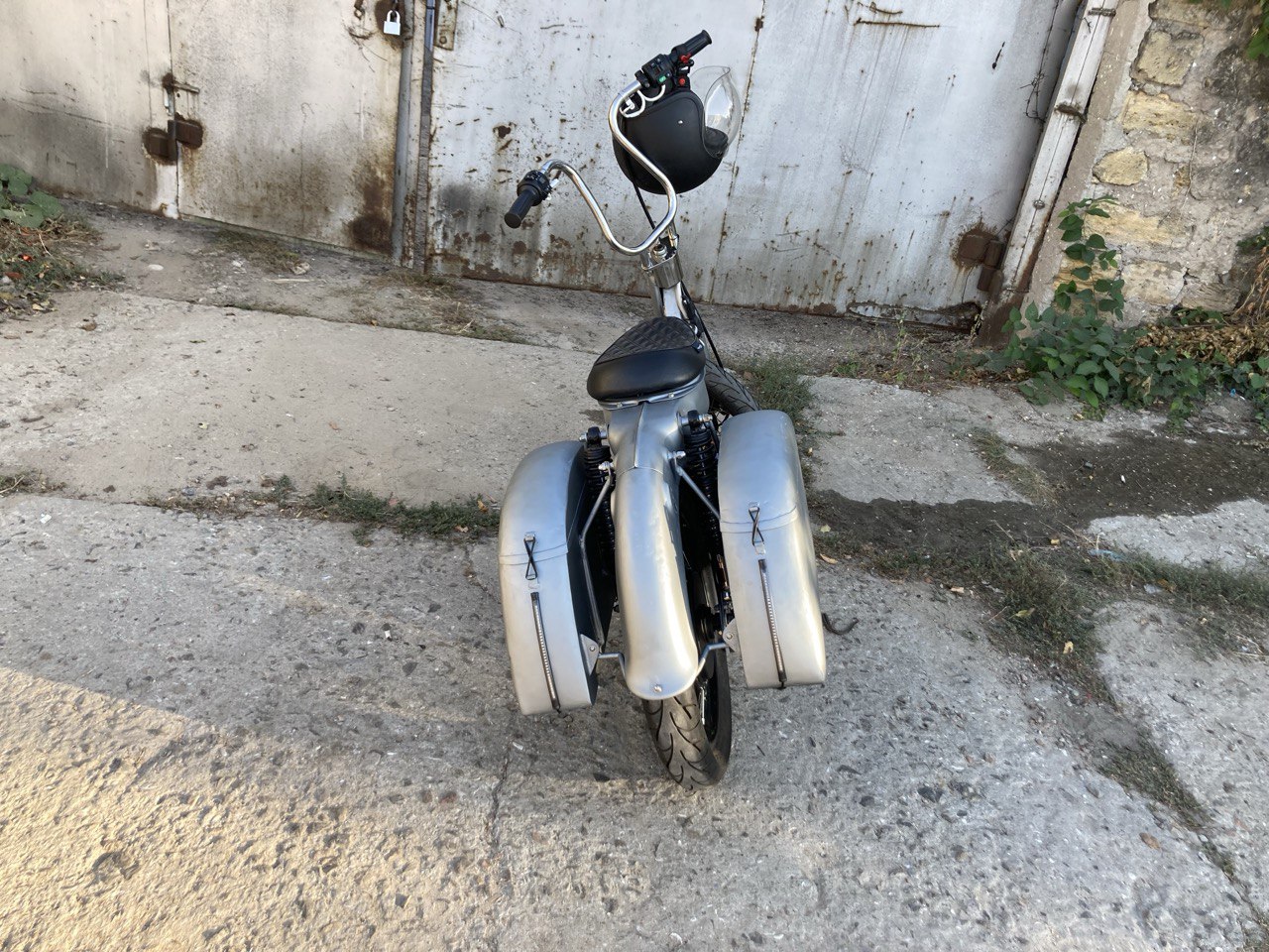 Но... После кучи примерок, с размещением батареек, ничего лучше не придумал, да и собственно рад финальному результату. Рама усилена, все лишнее обрезано, кофры и все элементы рамы, что закрывали место установки ДВС, изготовлены полностью из метала - в ручную выкатаны на английском колесе.