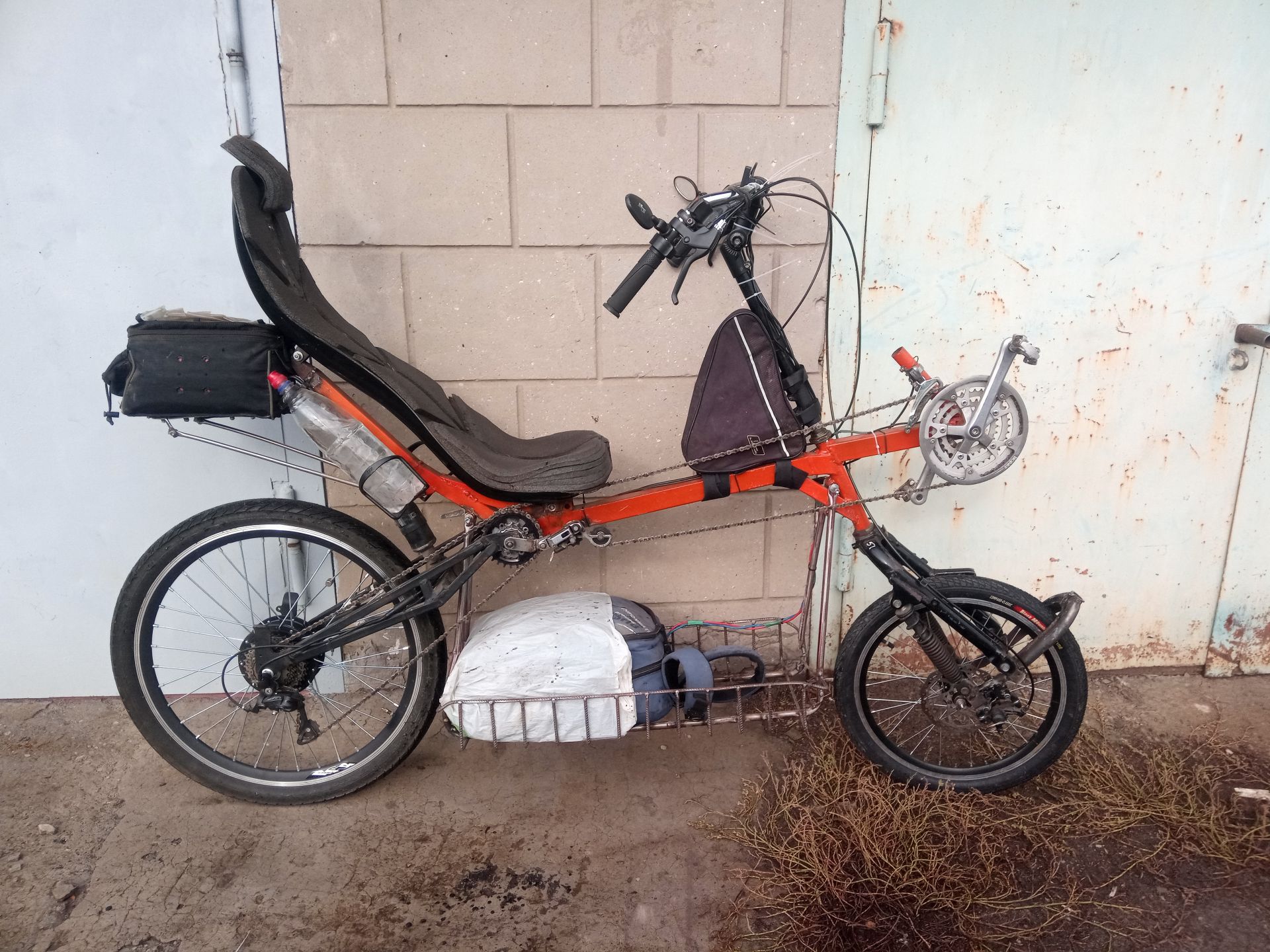Все началось в 2018 с постройки лежачего велосипеда, Как это не странно звучит, но строился он "вокруг " гермосумки (на первом фото под сидением).